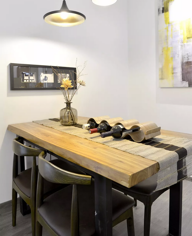 空間利用的剛剛好,實木的餐桌和餐椅,很有質(zhì)感,與客廳的書香氣也很搭,餐廳與客廳的隔斷,前面也提到了,這里細說一下,小隔斷不擋光,仿水泥材質(zhì)兼具質(zhì)感與美感。