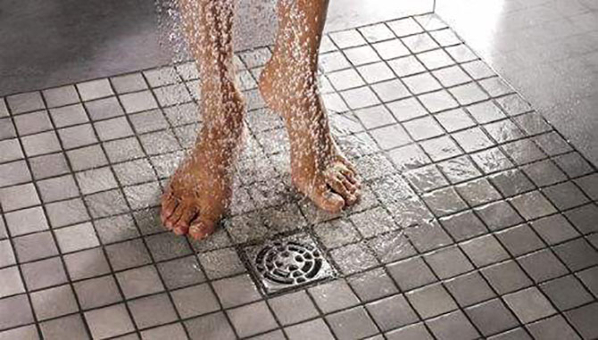 10、衛(wèi)生間地漏要做好坡度,不然洗澡的時(shí)候水下不去很不干凈!可以試著在邊上挖一圈溝槽再做地漏!