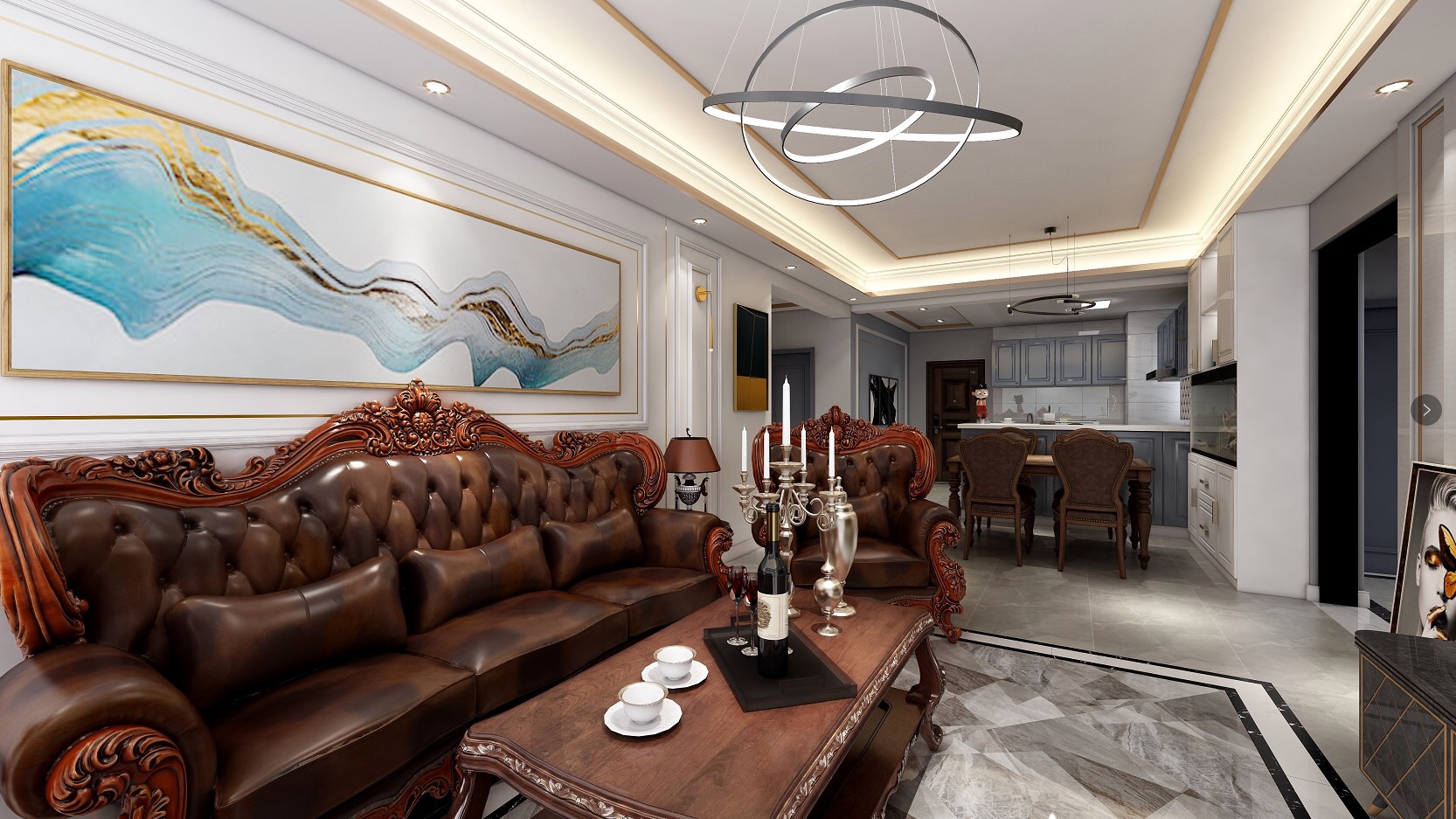 優(yōu)雅的沙發(fā),給空間營(yíng)造出復(fù)古懷舊的調(diào)調(diào),掩蓋不住著貴族的氣息。