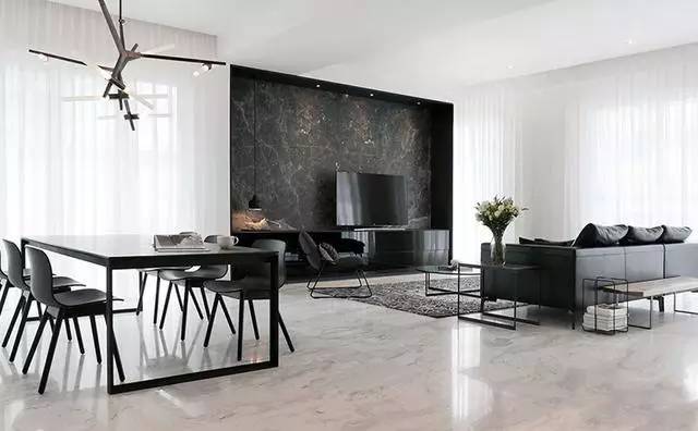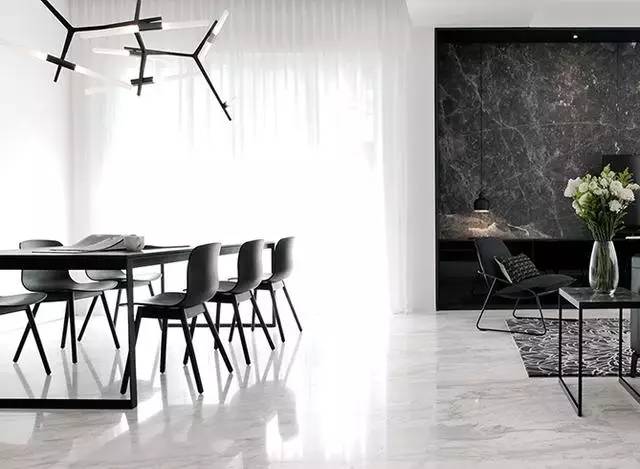 ▲淺灰白色的大理石光滑而有質(zhì)感,加之天花板也被刷白,整個(gè)空間看起來清爽極了。