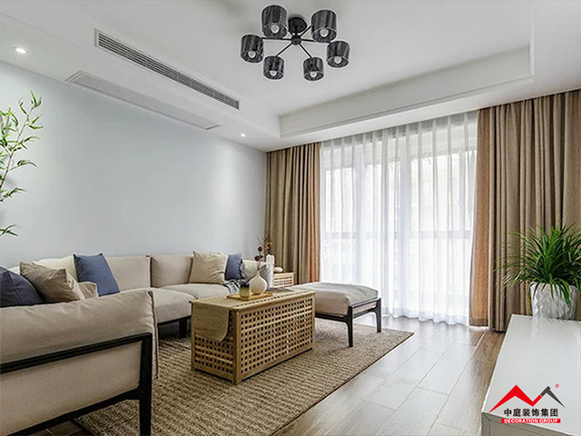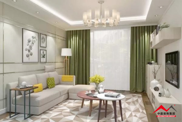 b、窗簾跟著次色調(diào)走是最安全的選擇,不一定要完全一致,只要顏色呼應(yīng)。比如選擇窗簾就可以考慮地毯或者茶幾桌布的顏色,在挑選的時(shí)候可以接近其顏色,整個(gè)空間就相得益彰。