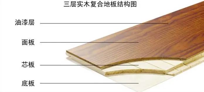 三層實(shí)木復(fù)合地板,由三層實(shí)木單板交錯(cuò)層壓成,分為三個(gè)部分:表層、芯層和底層。