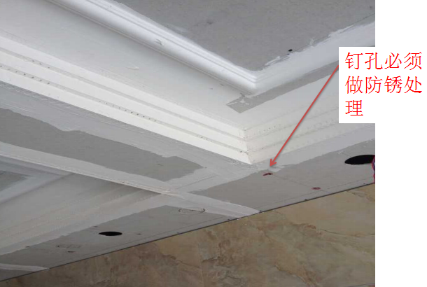 釘眼必須防銹處理(涂防銹漆),接縫必須做防裂處理(填防裂寶貼布帶)。