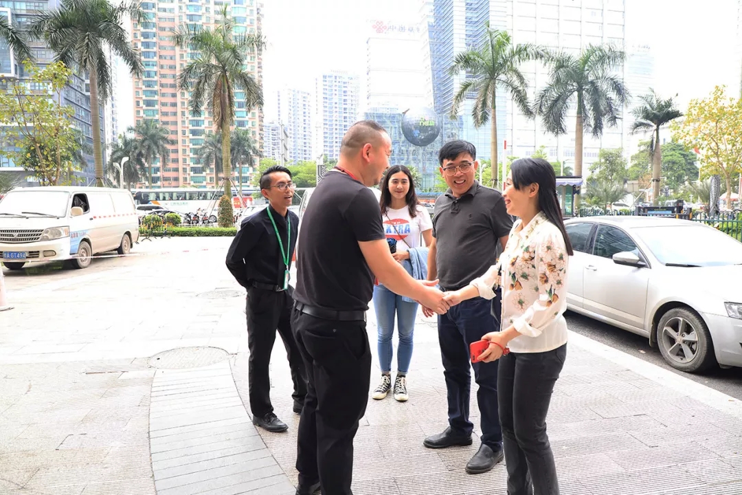 運(yùn)營二部副總經(jīng)理劉合波在公司大門前迎接紡織工業(yè)學(xué)校陳黔校長一行人。