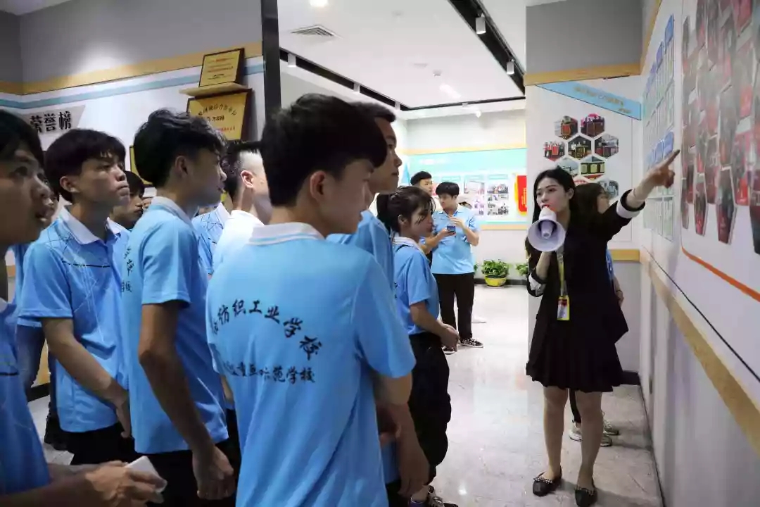 人資部經(jīng)理劉高才、主管黃丹丹帶領(lǐng)紡織工業(yè)學(xué)校學(xué)生參觀文化長廊,向?qū)W生們介紹公司企業(yè)文化理念、組織架構(gòu)、服務(wù)理念、企業(yè)榮譽(yù)、員工關(guān)懷等方面內(nèi)容,讓學(xué)生們對(duì)公司的企業(yè)文化有更深的了解。