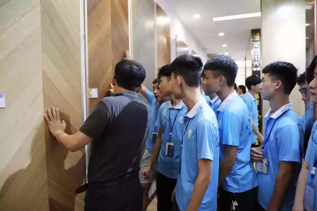 運(yùn)營部設(shè)計(jì)經(jīng)理韋昌豪帶領(lǐng)學(xué)生參觀軟裝體驗(yàn)館、工藝樣板間,講解裝修設(shè)計(jì)、裝修工藝、水電工程用料方面的知識(shí),并解答學(xué)生們的疑問。