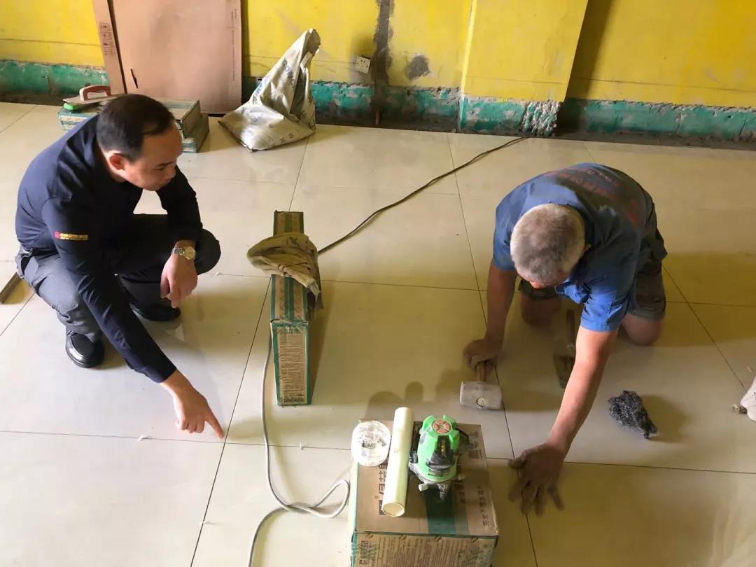 距離廣西教育廳住宅裝修集體開工儀式已過去一月有余,部分工地施工相繼進(jìn)入鋪磚階段。作為教育廳住宅裝修工程總指揮,肩負(fù)著集團(tuán)的使命和業(yè)主朋友們的信任,集團(tuán)副總裁、工程質(zhì)量管理中心總經(jīng)理吳文戰(zhàn)時刻牽掛著教育廳工地進(jìn)展情況。10月30日,吳總帶領(lǐng)質(zhì)管中心工程管理團(tuán)隊赴工地現(xiàn)場對工程材料、質(zhì)量和服務(wù)三大項進(jìn)行突擊檢查!