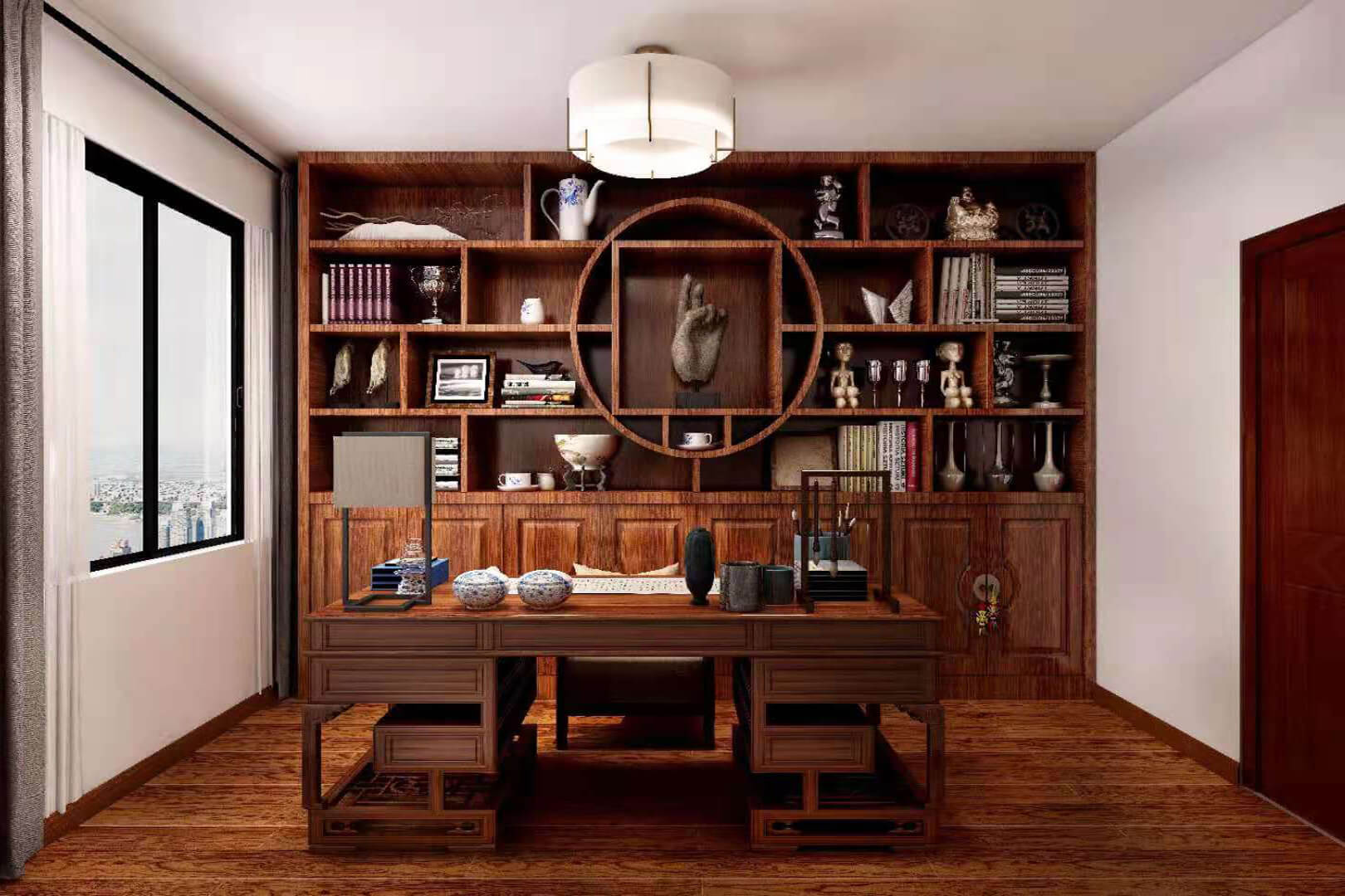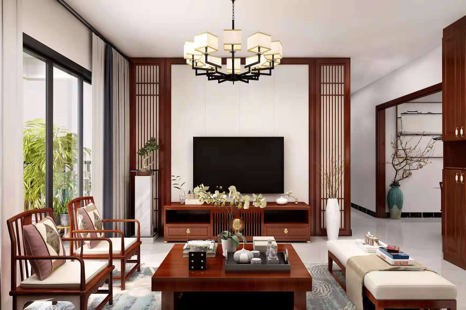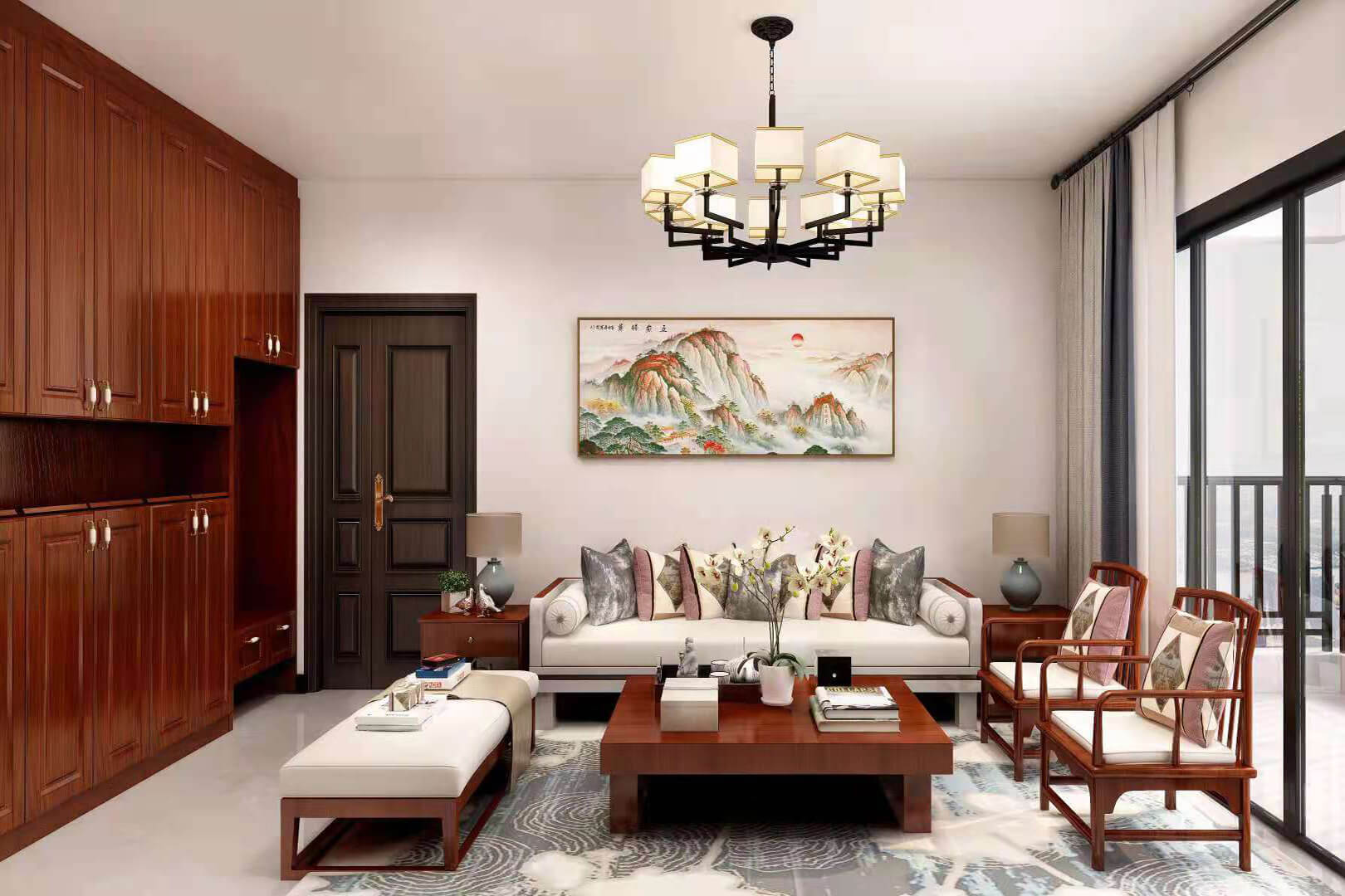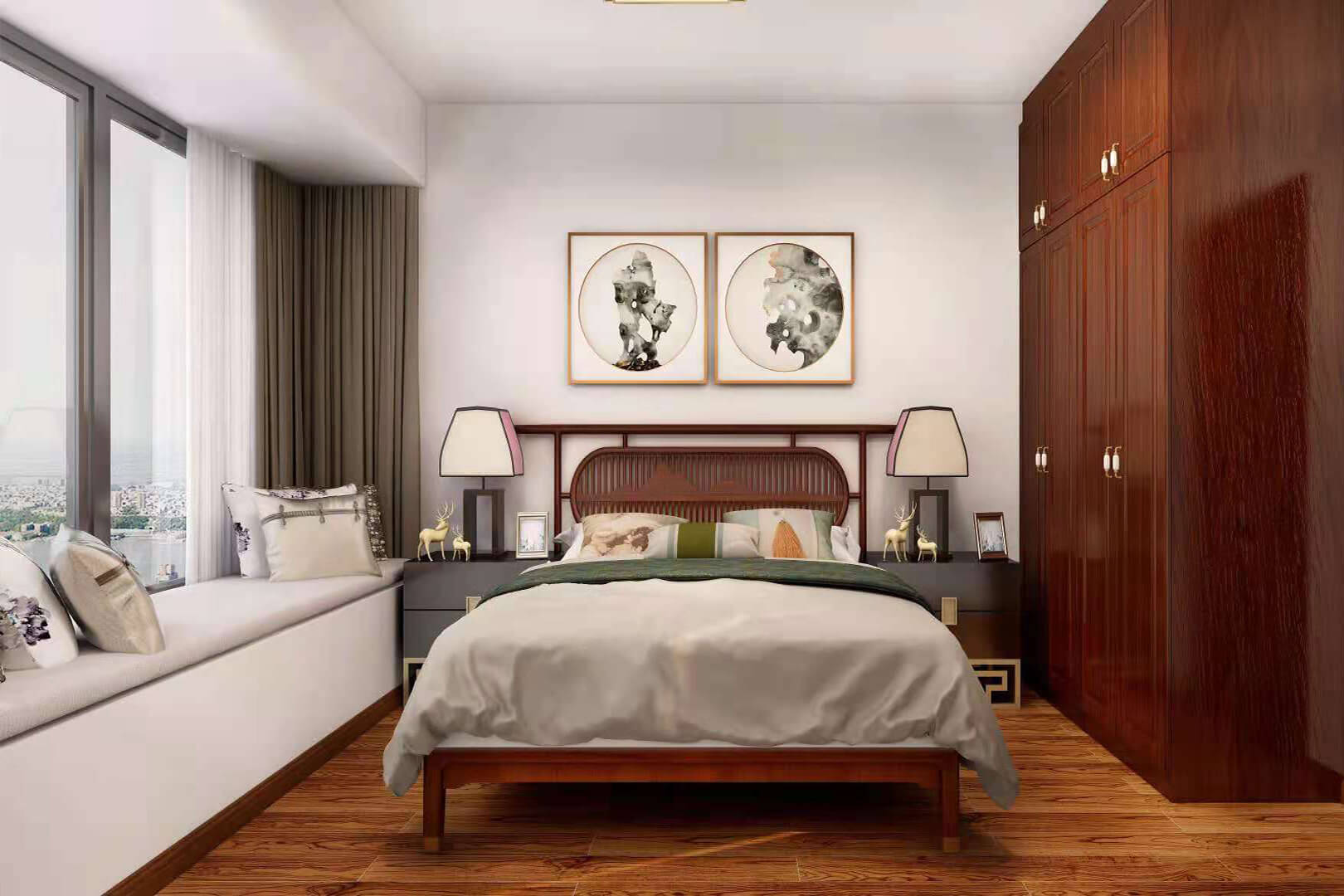 瀏覽量:552房子整體家具以紅木為主??蛷d采用白色地磚和留墻面與家具搭配讓顏色看起來(lái)更為簡(jiǎn)潔,不做裝飾的吊頂讓整體的空間看起來(lái)更寬大。房間采用紅木地板與房間家具色彩呼應(yīng),墻面留白用水墨畫(huà)裝飾讓房間裝飾更豐富,也讓色彩更多了層次感。