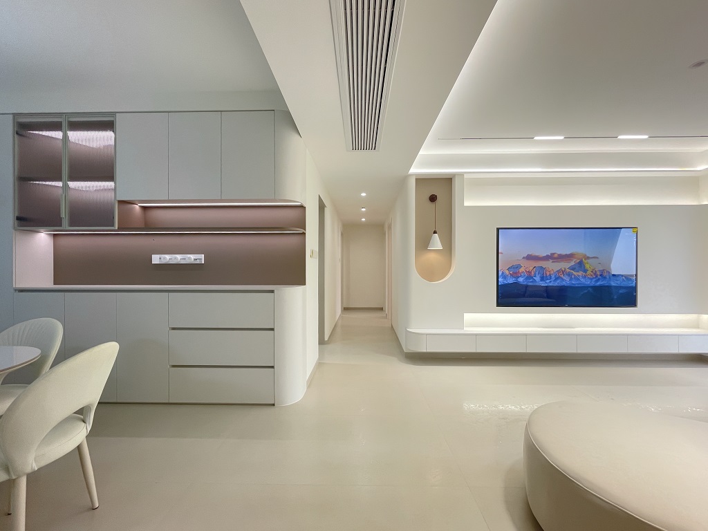 瀏覽量:1108空間整體奶白色調(diào)裝飾,耶為空間帶來了充沛的光線,設(shè)計(jì)師整體結(jié)構(gòu)上不設(shè)明顯的界定,在裝修次材料、色彩搭配上逐步描述空間的構(gòu)成關(guān)系。