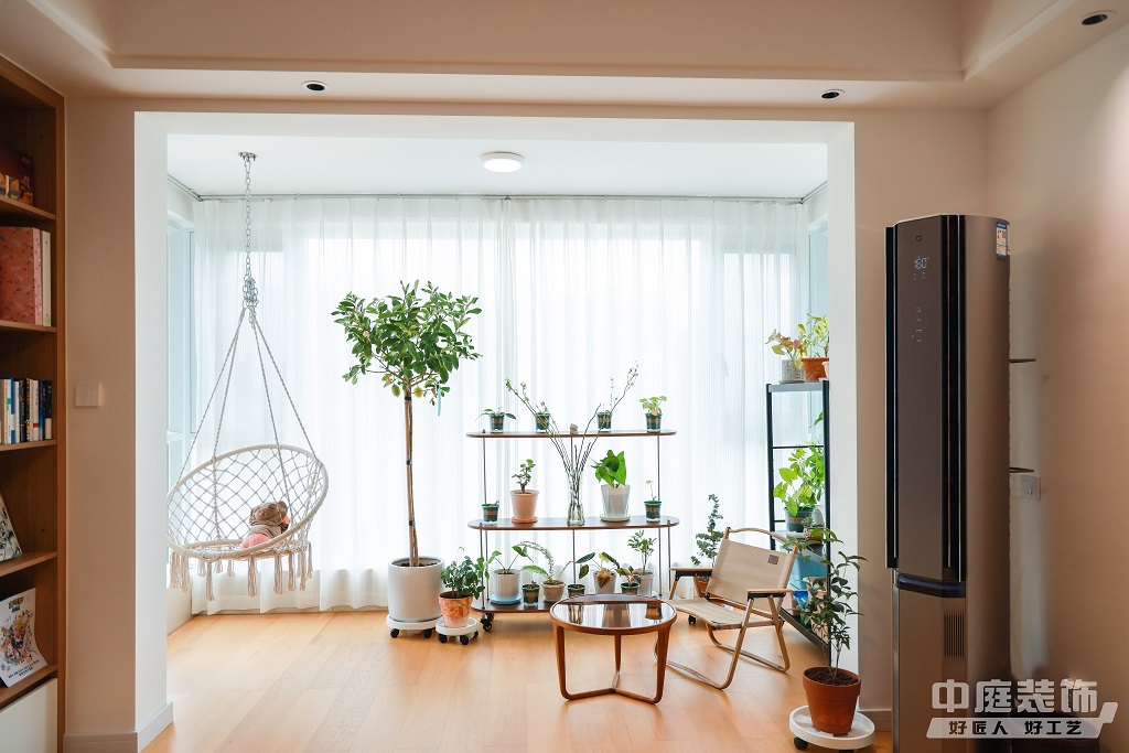 瀏覽量:889仿佛步入了一個(gè)自然與簡約交織的溫馨空間。淺色調(diào)的木質(zhì)地板營造出一種質(zhì)樸而不失高雅的氛圍??蛷d中央,去客廳化的設(shè)計(jì),一排原木色到頂書架擺滿精心挑選的物件和書籍,一進(jìn)門就能感受家的溫暖。