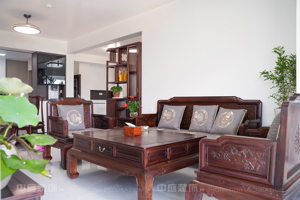 瀏覽量:162全屋以深色實木家具為主,雕花工藝精致細膩,盡顯中式家具的古樸質(zhì)感。搭配帶有傳統(tǒng)紋樣的抱枕,在細節(jié)處傳遞中式美學(xué)??臻g中綠植點綴其間,與木質(zhì)家具相得益彰,營造出自然清新的氛圍。無論是客廳的沙發(fā)組合,還是茶室的茶桌茶具,亦或是餐廳的圓桌設(shè)計,都在簡約的現(xiàn)代空間里,勾勒出中式家居的典雅與詩意。