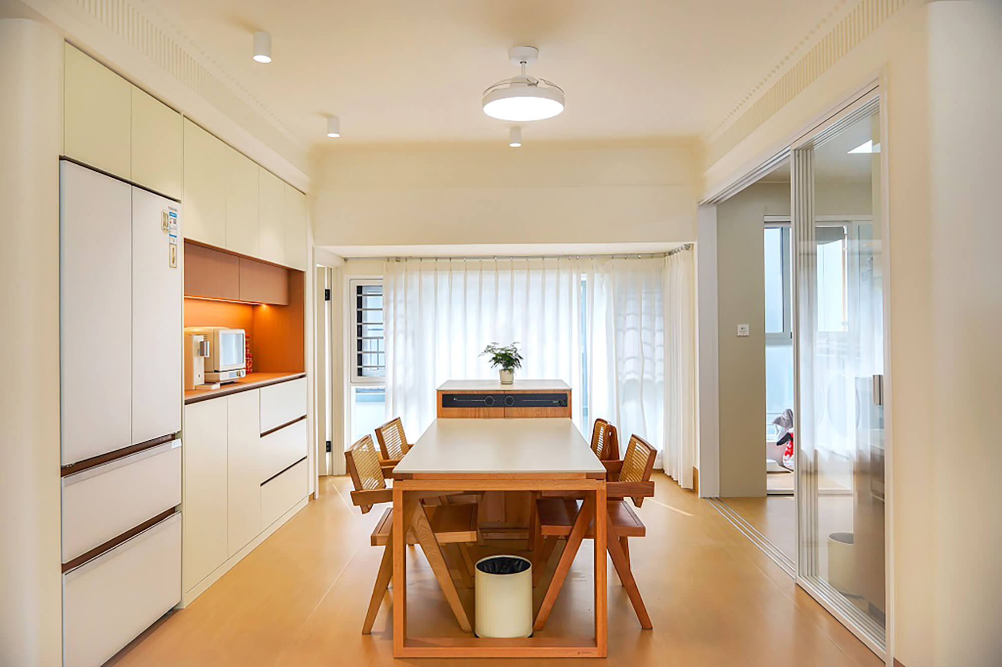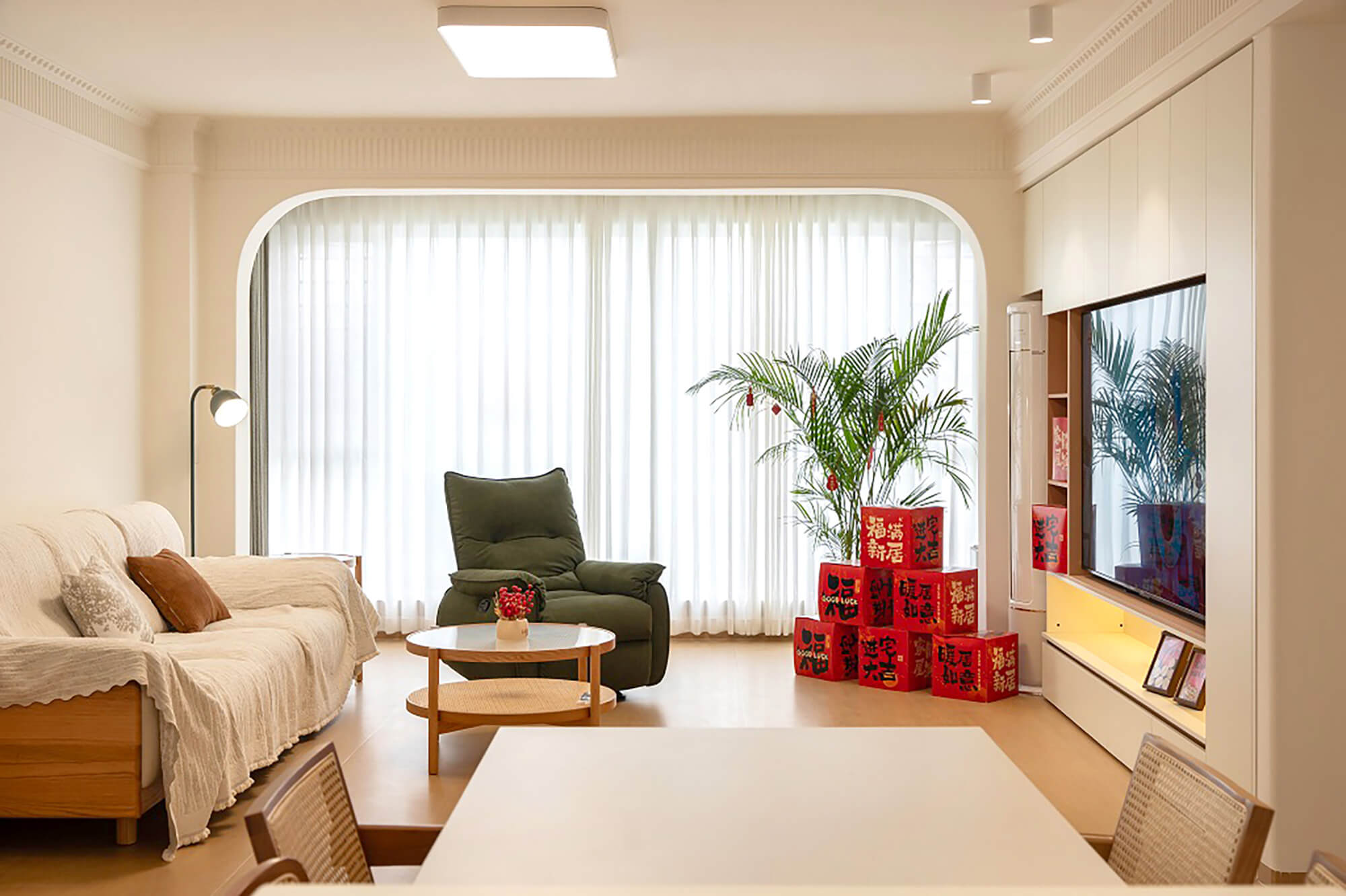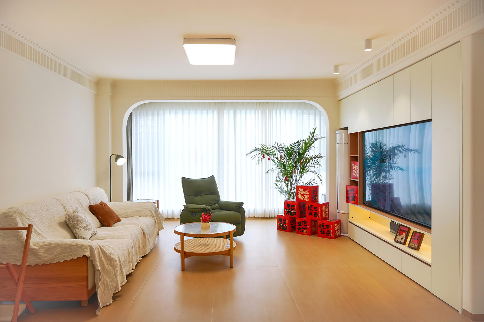主打 “自然治愈”,以實木板材為核心元素,保留木材天然紋理與溫潤觸感。色彩以原木色為基底,搭配白、米、淺灰等柔和色調(diào),搭配棉麻、藤編等自然材質(zhì),減少復雜造型,強調(diào)空間通透感,傳遞質(zhì)樸、放松的居家氛圍。