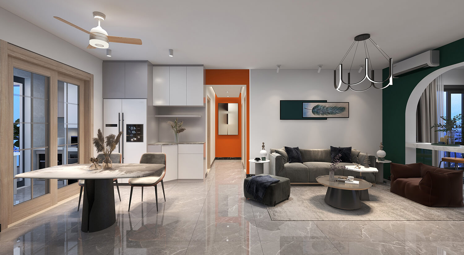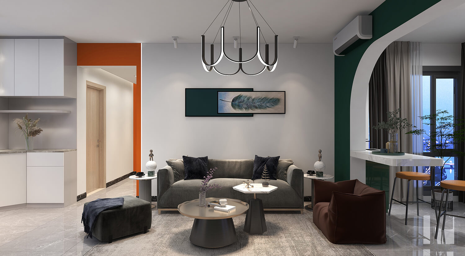 瀏覽量:223本案例戶型為:3房1廳1衛(wèi),總面積125㎡。這是一套輕奢風(fēng)格的房子。設(shè)計師采用開放式布局,將客廳、餐廳融為一體。這樣不僅增加了家庭成員的互動和交流,也可以讓房間看起來更加寬敞。輕奢金屬飾品與布藝沙發(fā)的結(jié)合,使得畫面具有時尚感又不乏溫馨。
