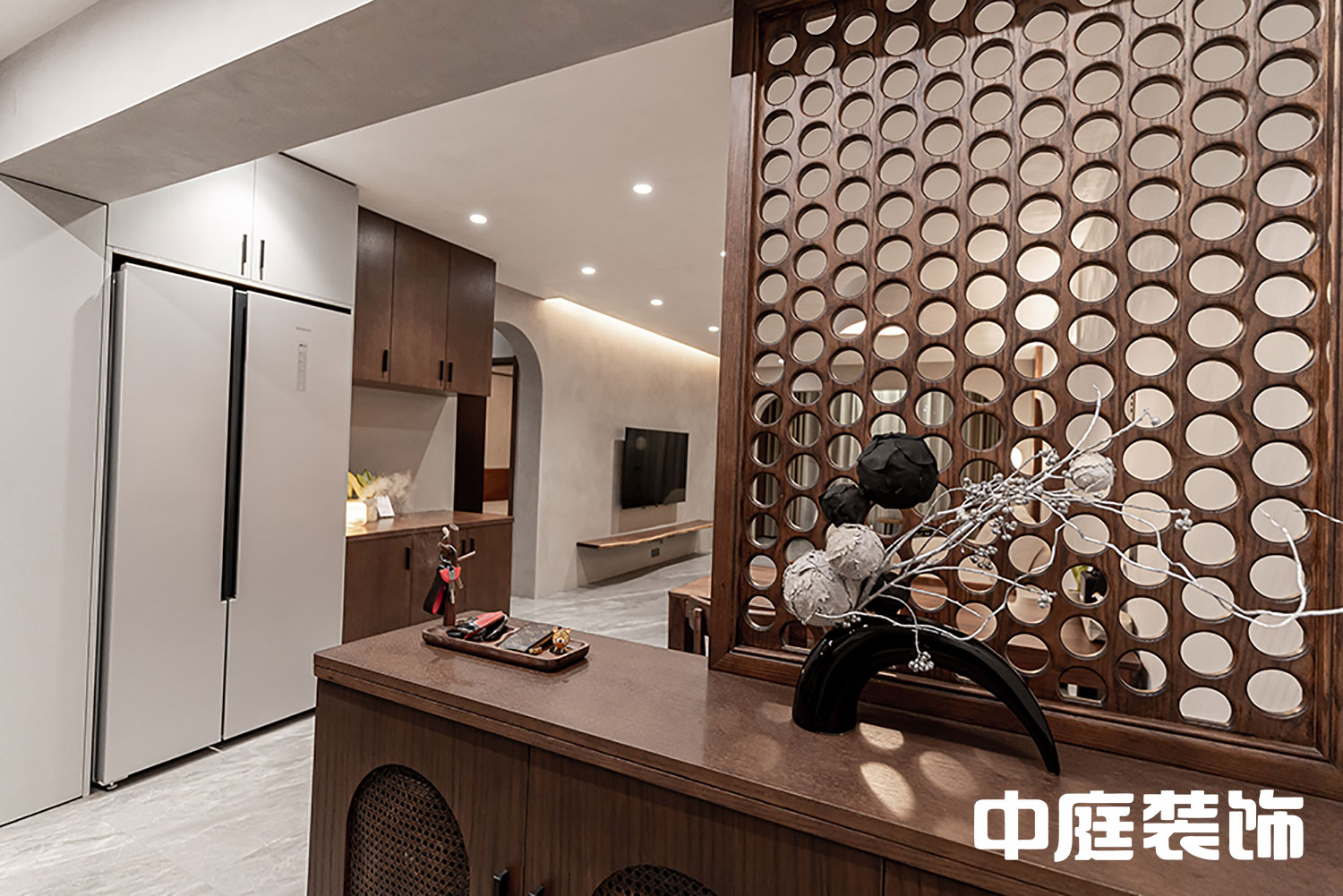‘T’字動線非常合理,入戶鞋柜設(shè)計(jì)避免開門一覽無余的尷尬,更利于保護(hù)業(yè)主的私密性。在風(fēng)水也避免了穿堂煞。
